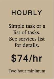 As your Move Concierge, we can take charge of your whole move as your personal advocate, triple-bidding movers, organizing, running to storage, buying materials, packing and unpacking and arranging temporary accommodati0n.